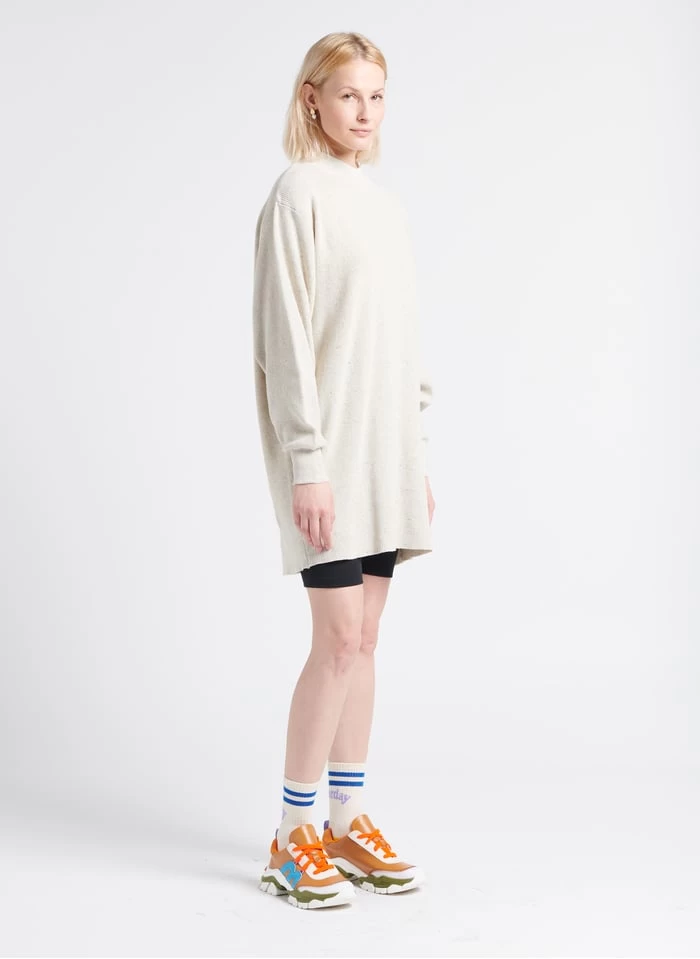 Dit model wordt aangeboden met Korte trui-jurk biokatoenblend by AMERICAN VINTAGE, Lage, leren sneakers by MOMONI