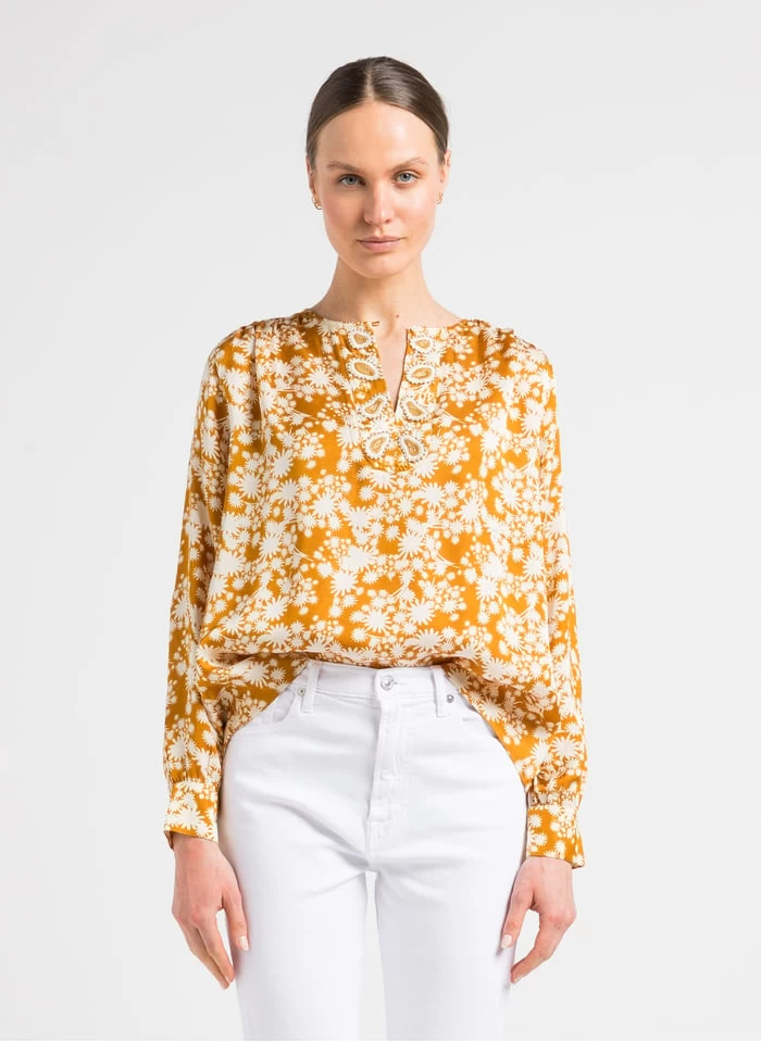 Blouse met Tunesische kraag en bloemenprint by Bella Jones voor Dames.