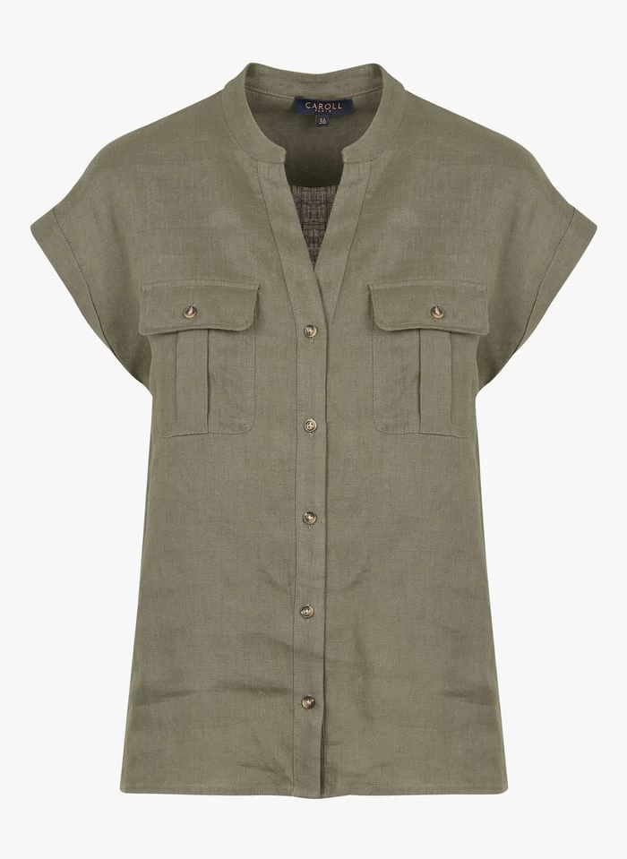 Ruimvallende, linnen blouse met tuniekhals by Caroll voor Dames.