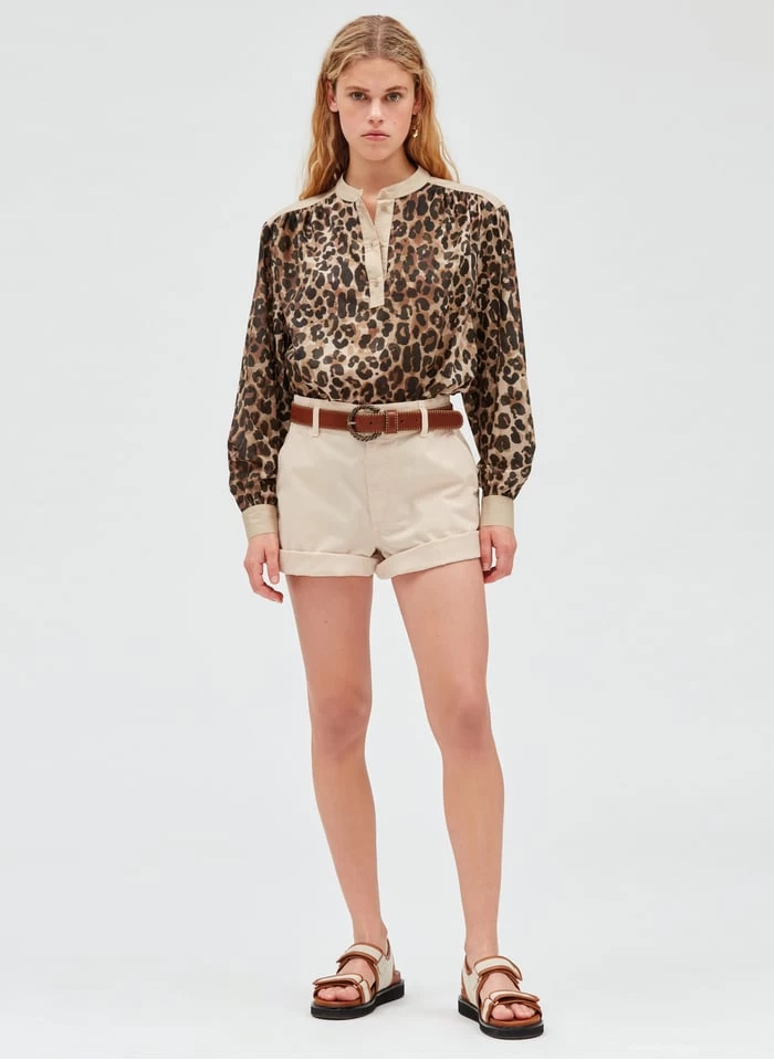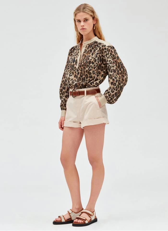 Katoenen short met paperbagtaille by Claudie Pierlot voor Dames.