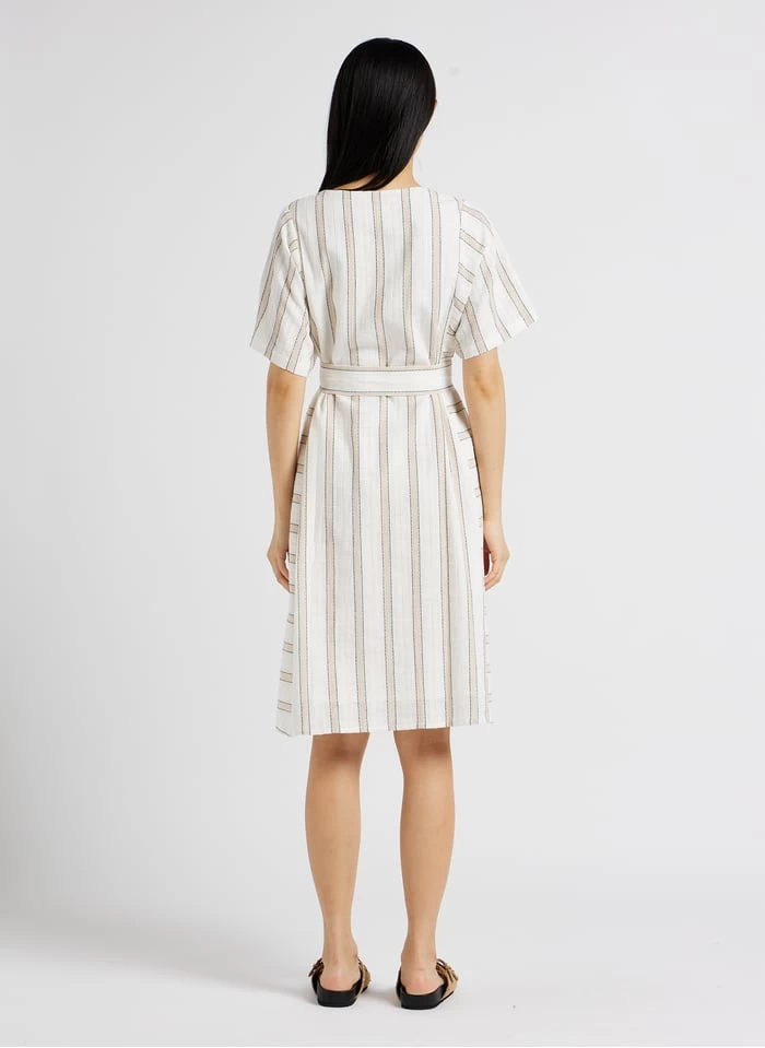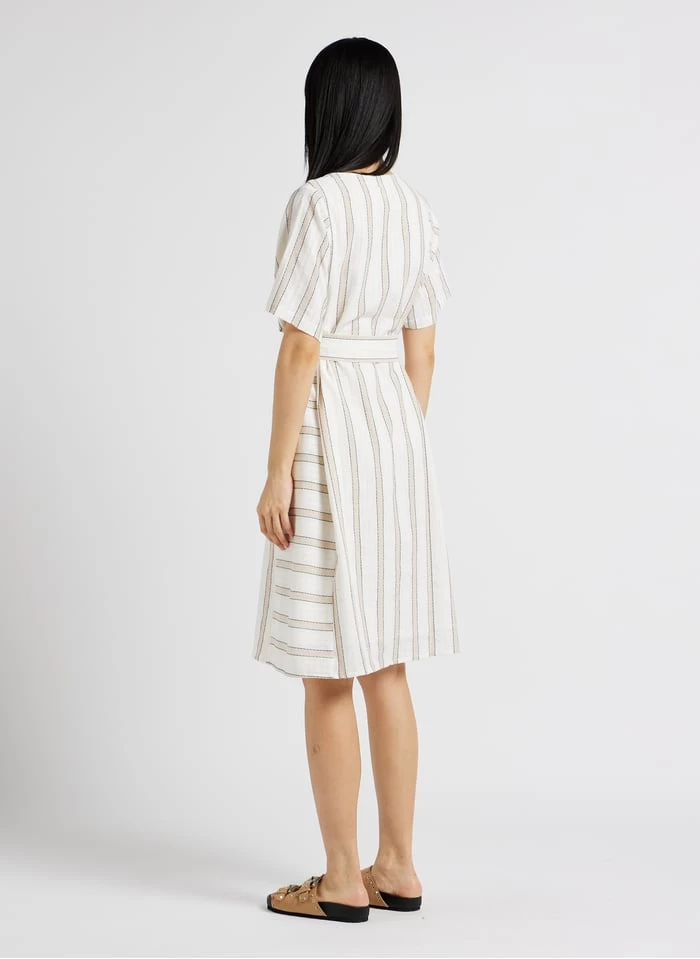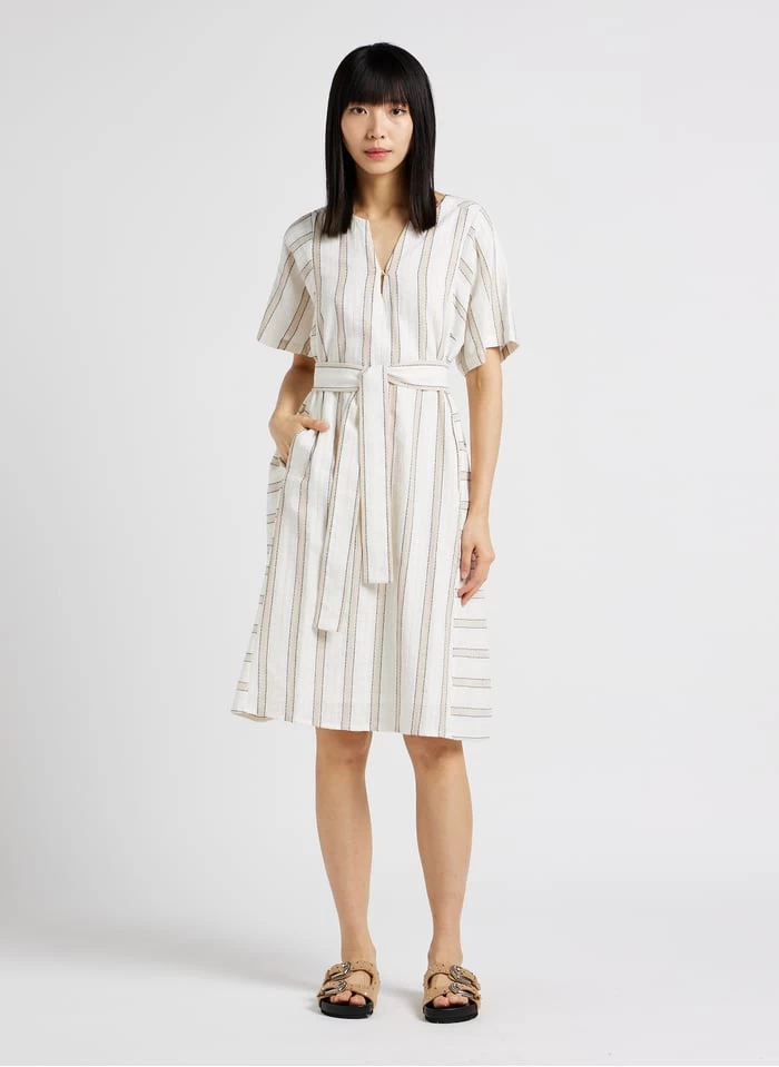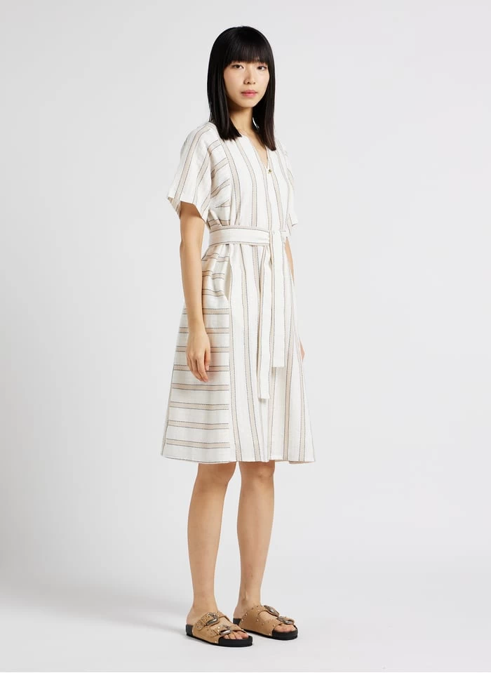 - – Robe midi rayée manches courtes