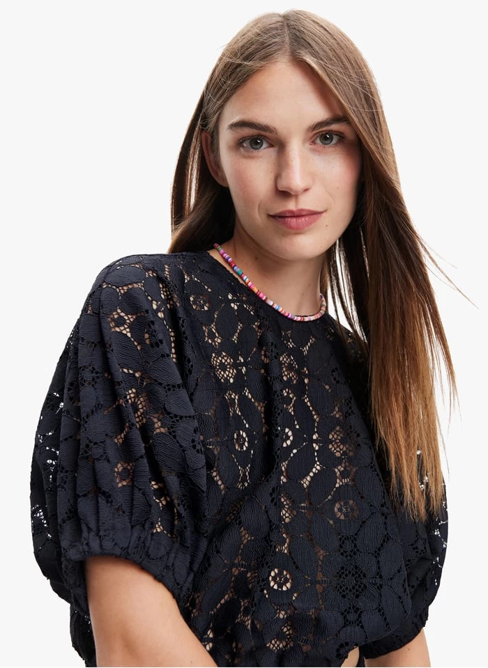Korte, kanten blouse by Desigual voor Dames.