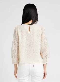 MAISON 123 TONIA – Blouse Van Katoenmix Met Borduurwerk En Ronde Kraag | Wit