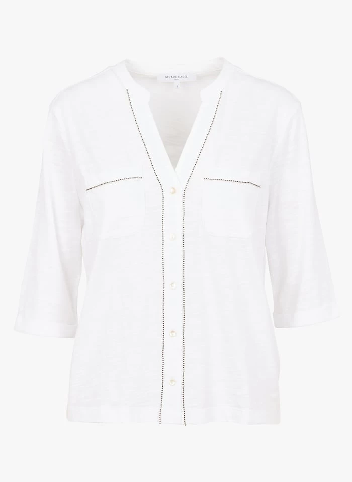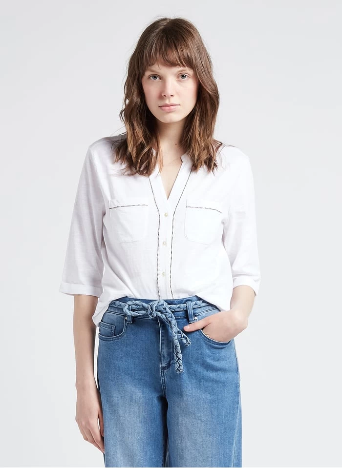MAISON 123 TONIA – Blouse Van Katoenmix Met Borduurwerk En Ronde Kraag | Wit