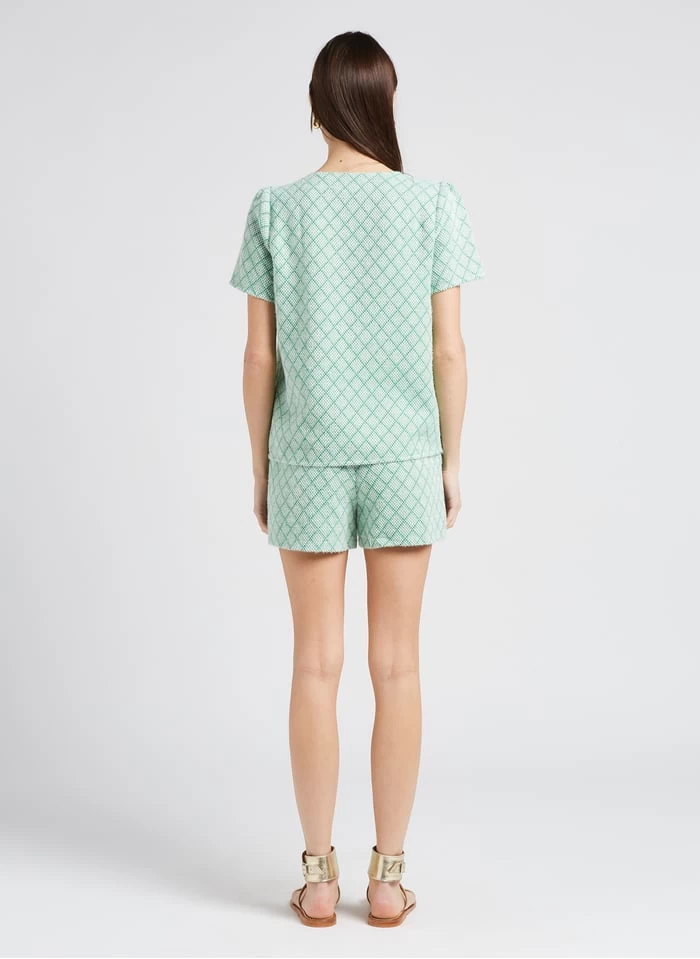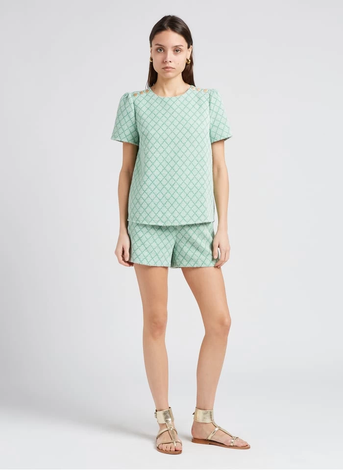 Dit model wordt aangeboden met Ruimvallende, top met ronde hals en jacquardmotief by KARL MARC JOHN