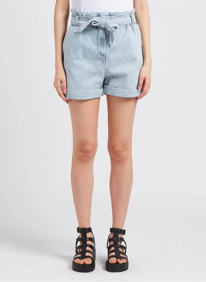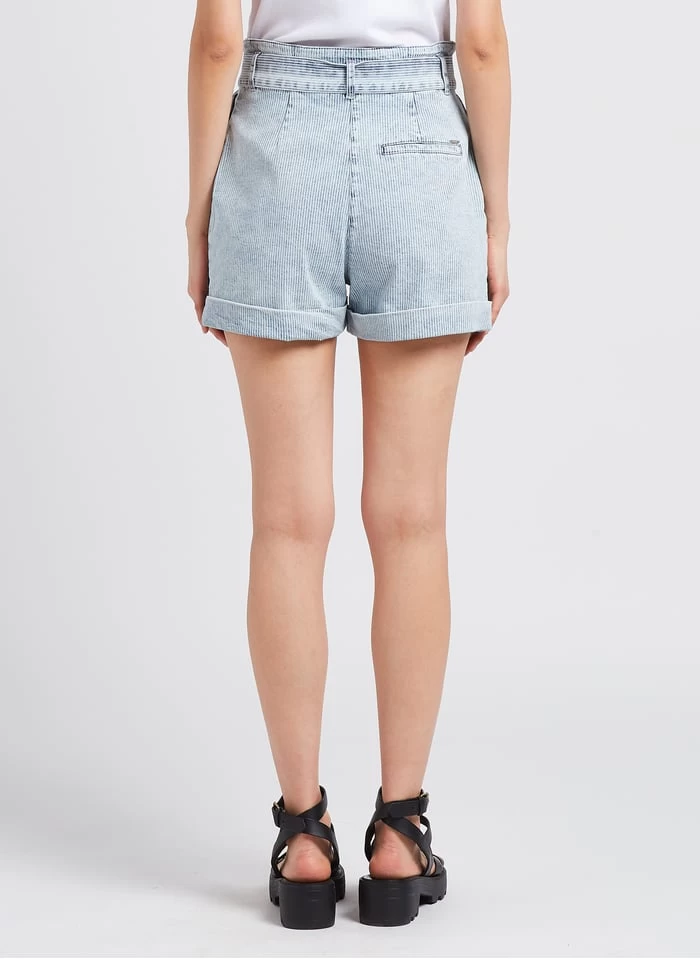 Gestreepte short van katoenmix met hoge taille by IKKS voor Dames.