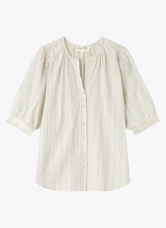Gestreepte, katoenen top met tuniekhals by Grace et Mila voor Dames.
