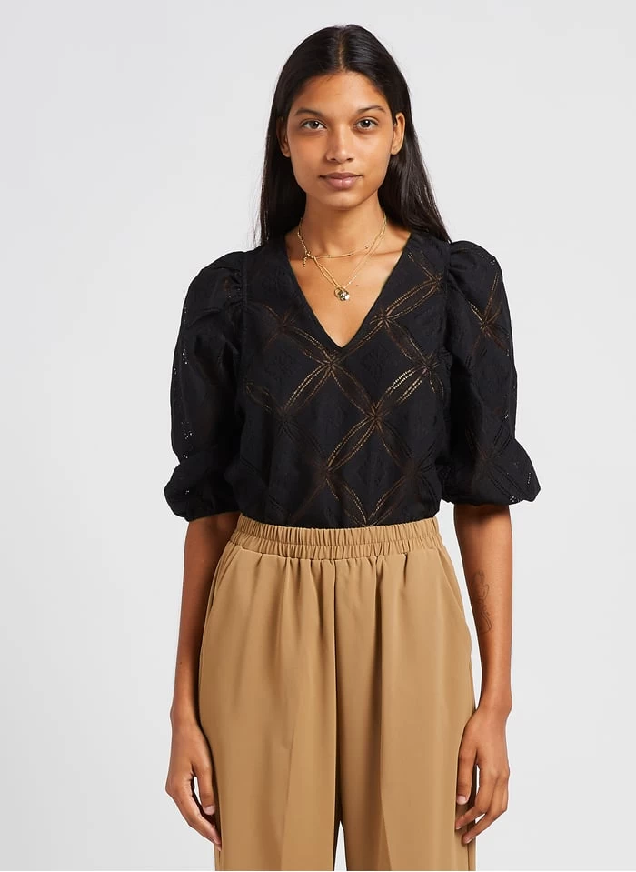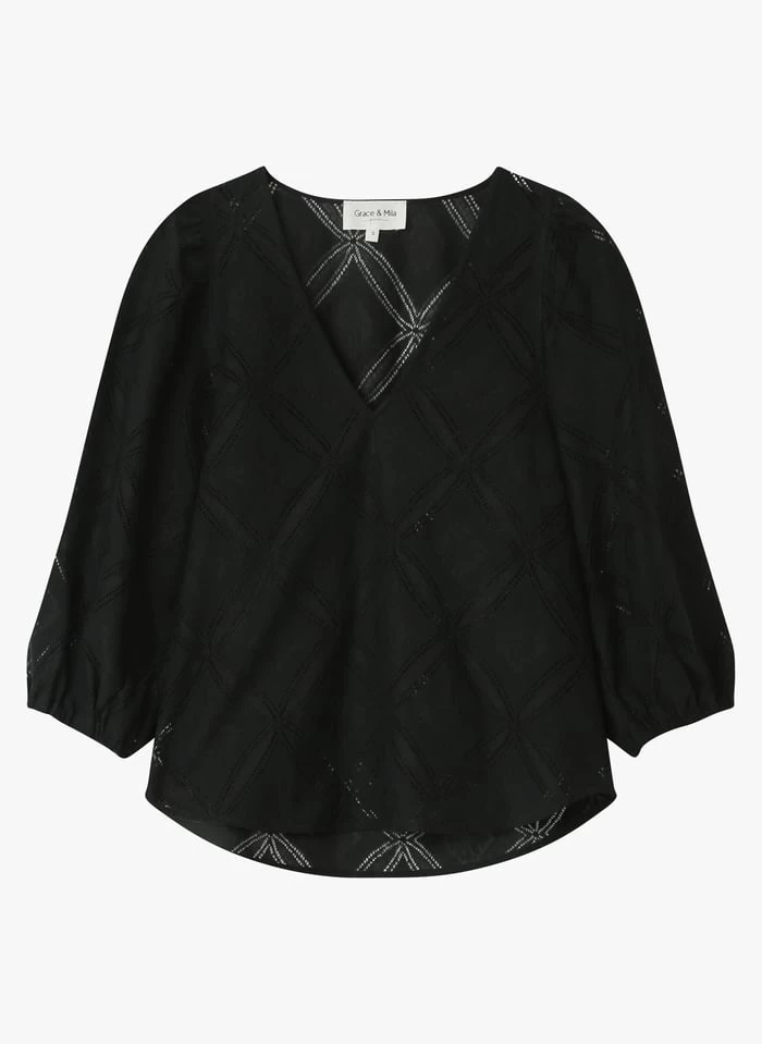 Top met V-hals en ajourmotiefje met borduursel by Grace et Mila voor Dames.