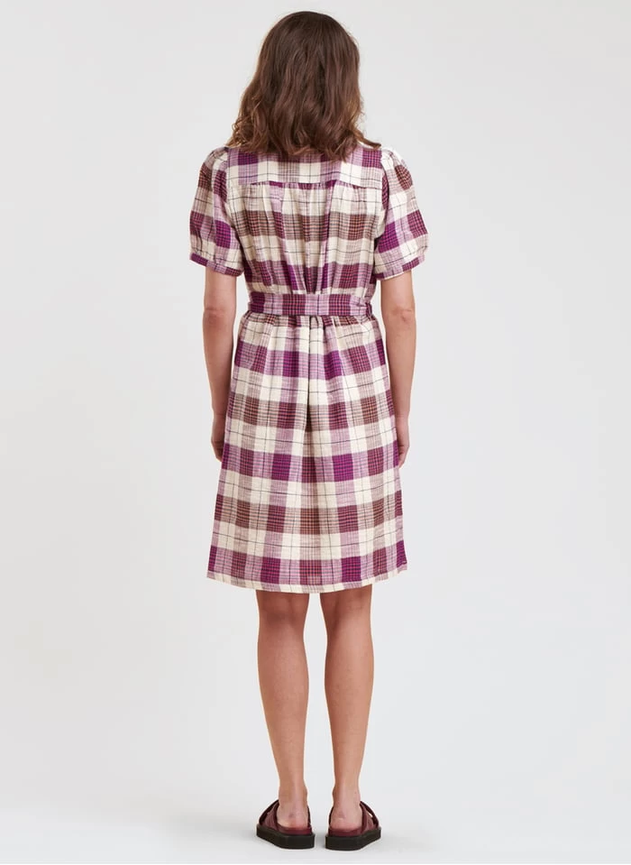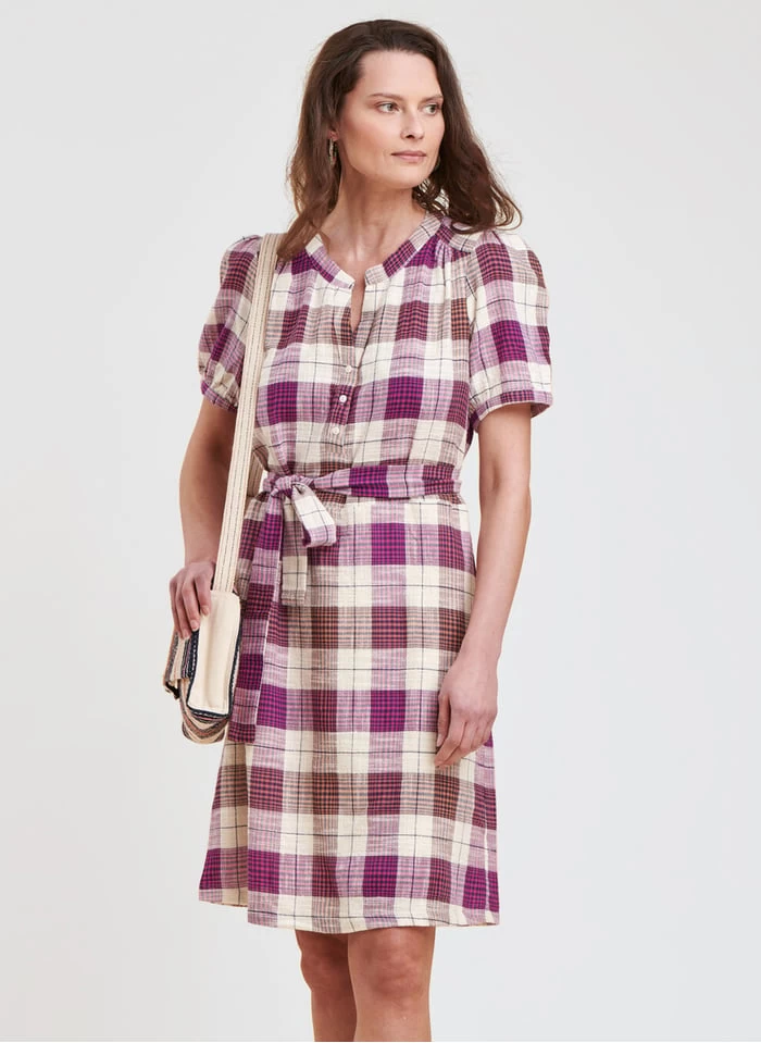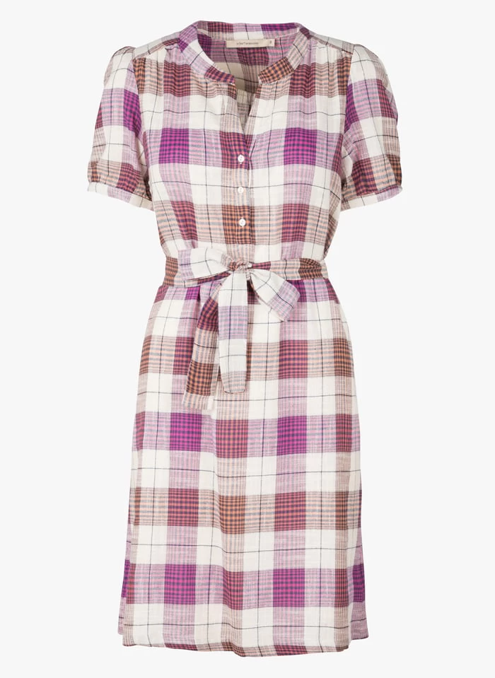 Korte, geruite katoenen jurk met tuniekhals by La Fée Maraboutée voor Dames.