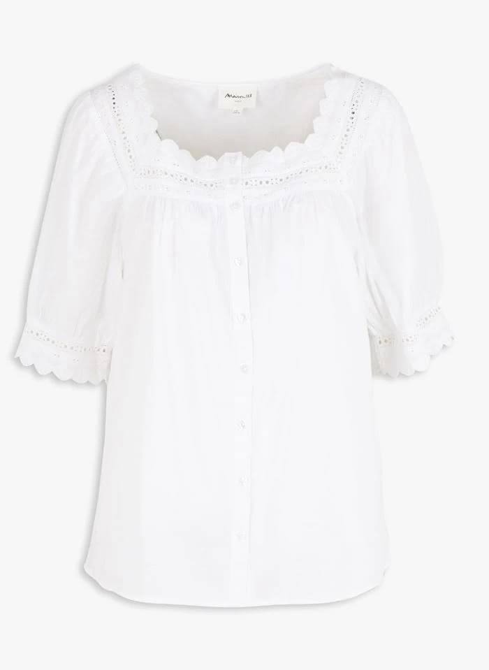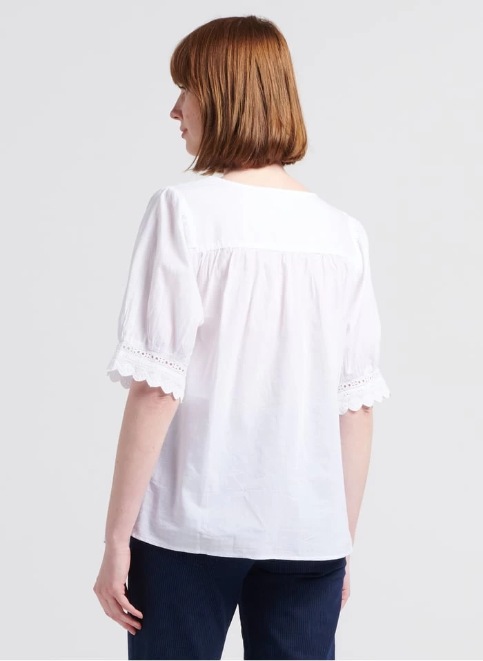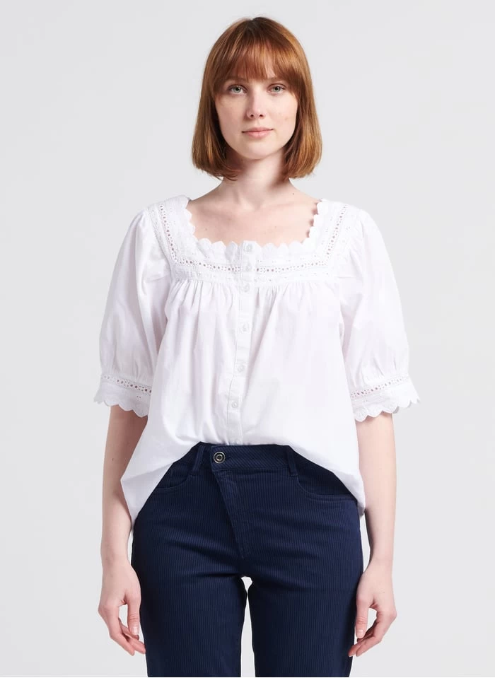 MAISON 123 TONIA – Blouse Van Katoenmix Met Borduurwerk En Ronde Kraag | Wit