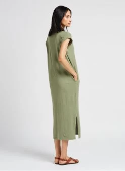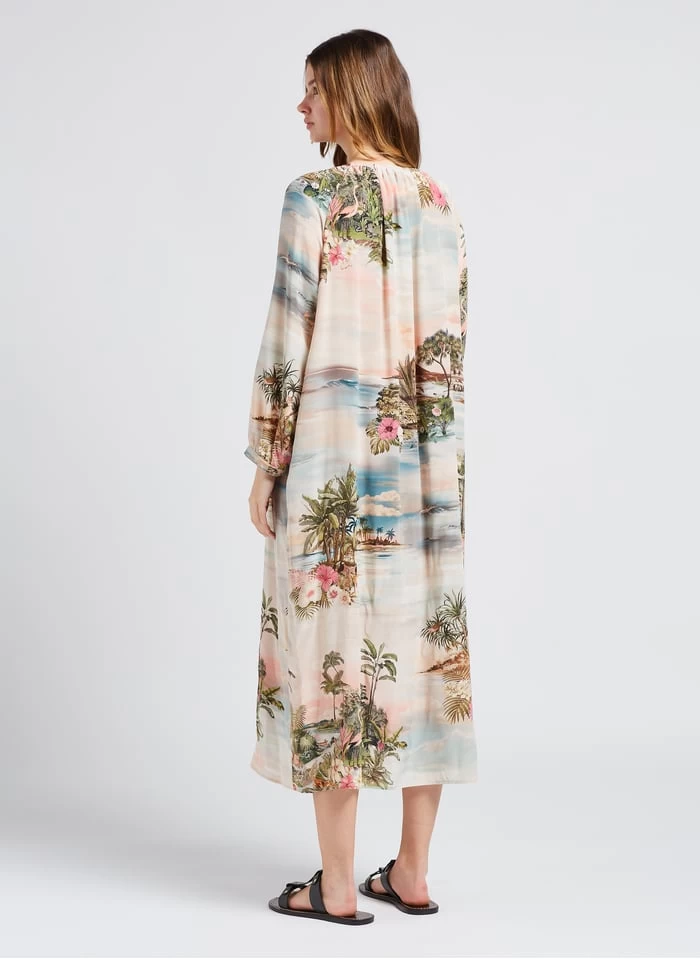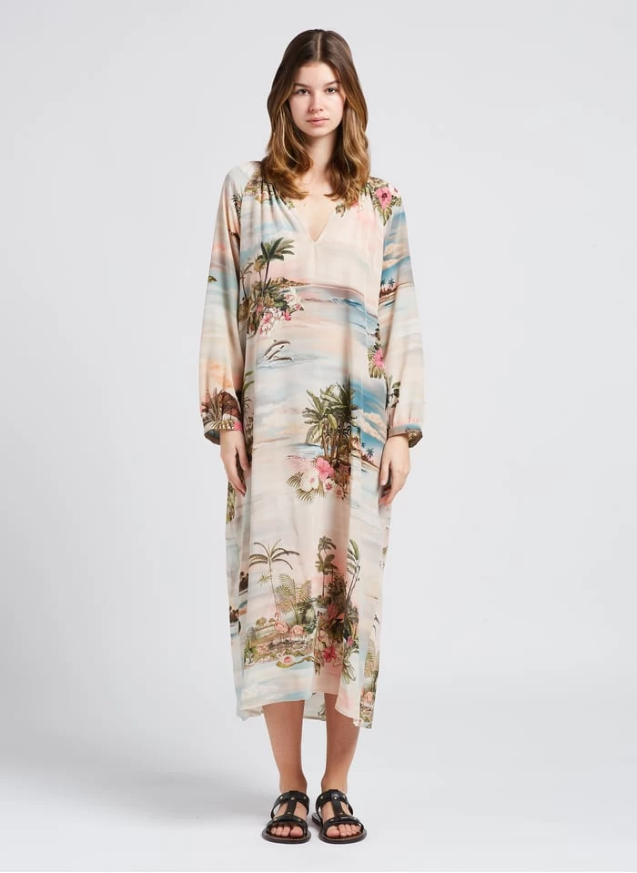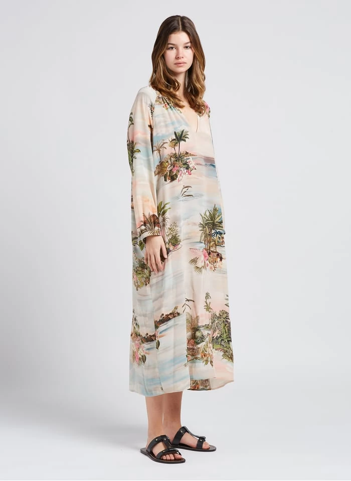 Lange, zijden jurk met V-hals en print by Momoni voor Dames.