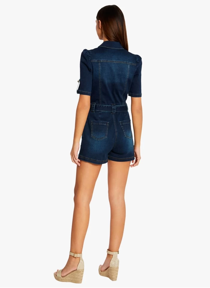 Korte jumpsuit van spijkerstof met ceintuur by Morgan voor Dames.