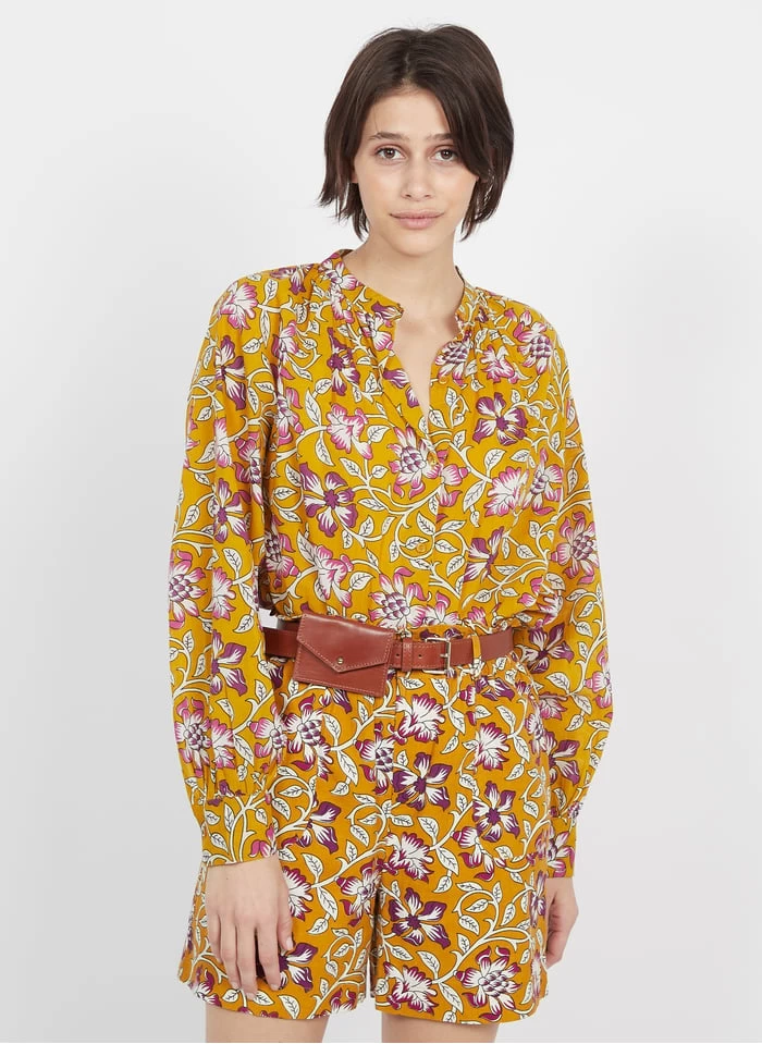 Dit model wordt aangeboden met Top van tricot met ronde hals by PETITE MENDIGOTE, Leren ceintuur by PETITE MENDIGOTE