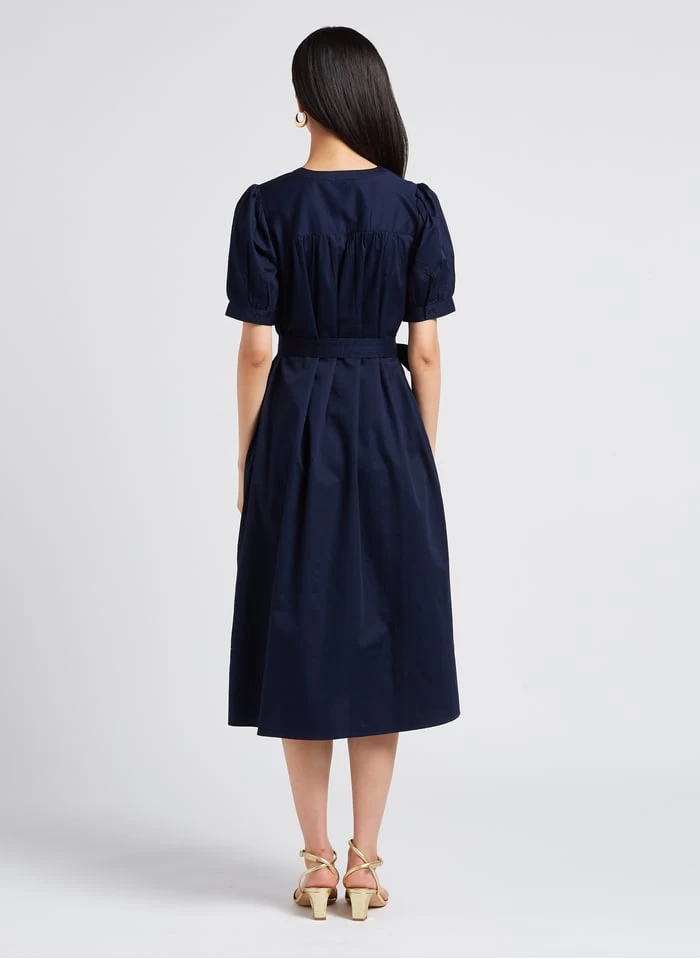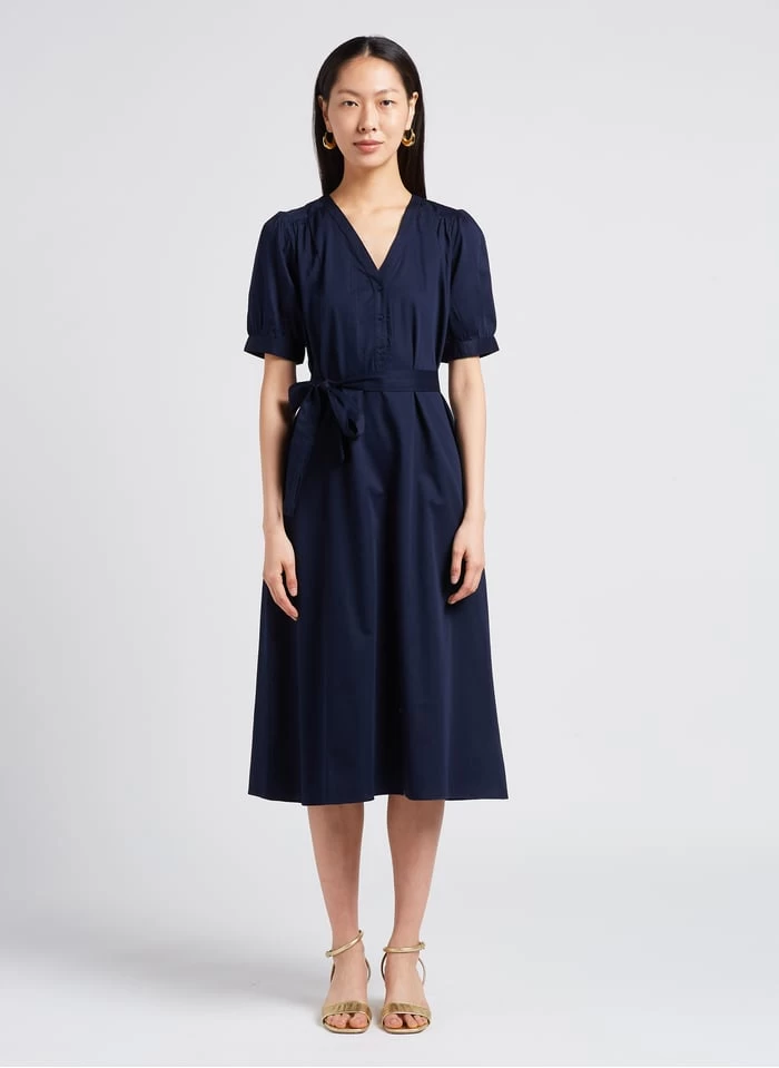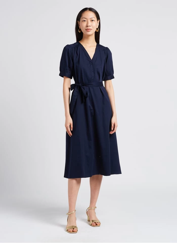 Halflange, katoenen jurk met V-hals by Sud Express voor Dames.
