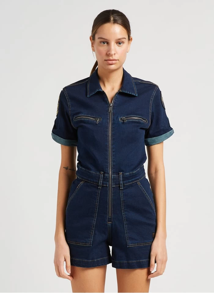 Playsuit van spijkerstof met badge by Schott voor Dames.