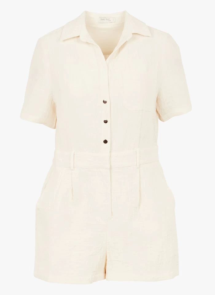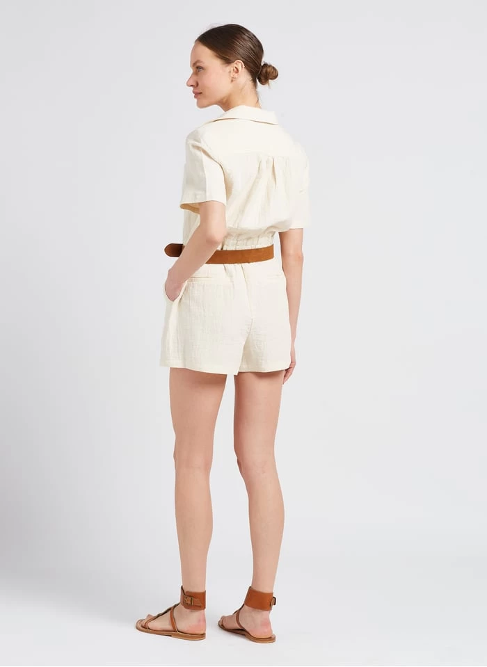 Ruimvallende playsuit van katoenmix met klassieke kraag by See U Soon voor Dames.