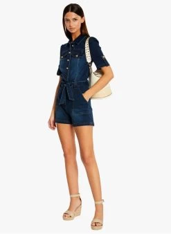 MORGAN SHIREL – Korte Jumpsuit Van Spijkerstof Met Ceintuur | Jeans Onbewerkt