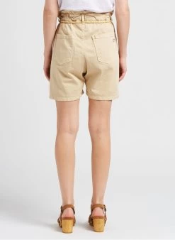 Please Short Met Hoge Taille En Plooitjes Katoenblend | Beige