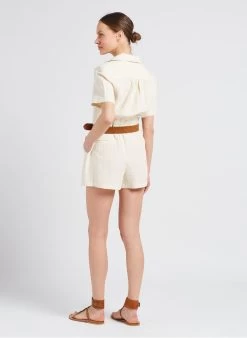 SEE U SOON Ruimvallende Playsuit Van Katoenmix Met Klassieke Kraag | Wit