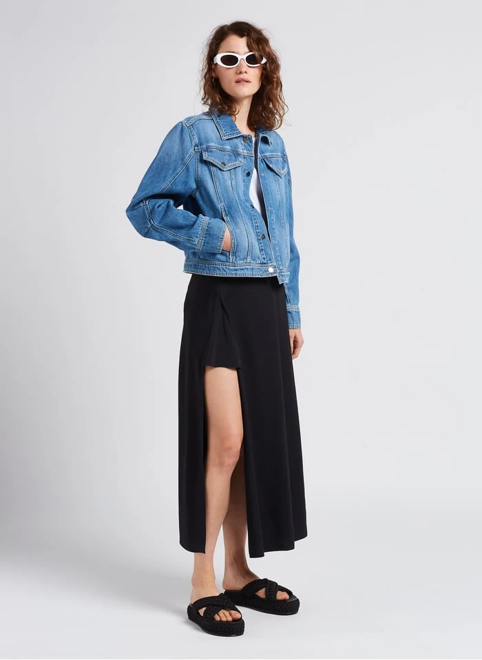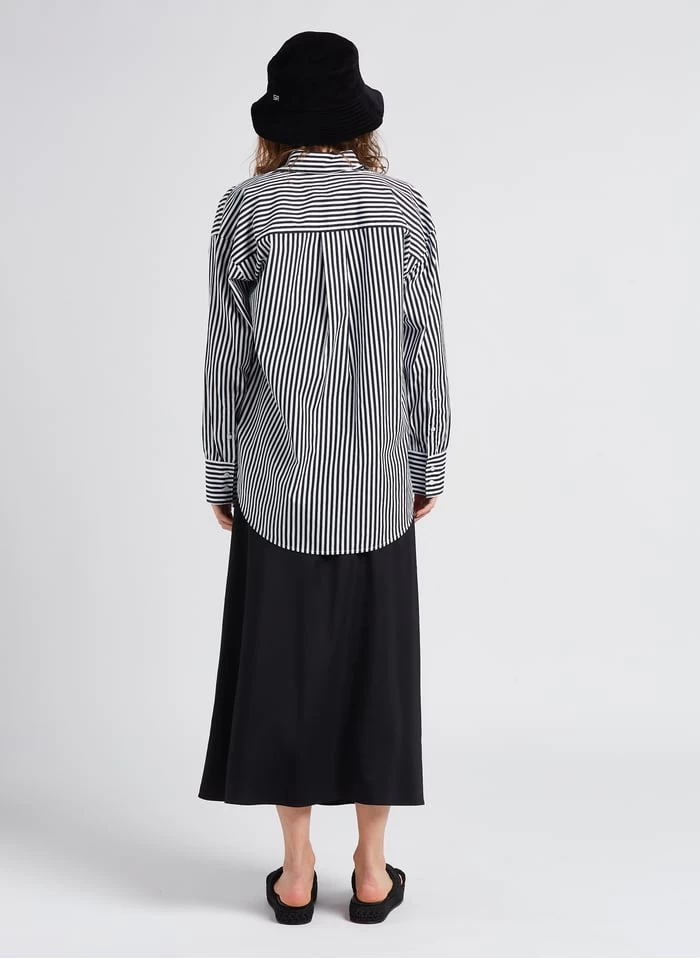 Dit model wordt aangeboden met Klassieke blouse van katoen by SAISON 1865, Bobhoedje van katoenvelours by SONIA RYKIEL, Gevlochten sandaaltje met sleehak by JONAK