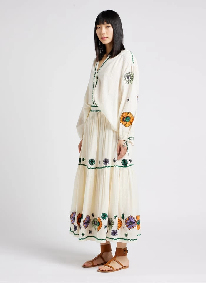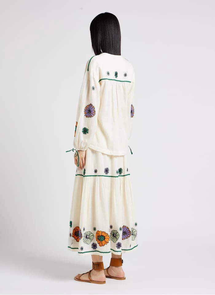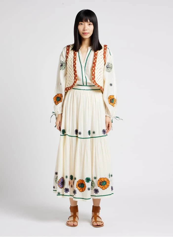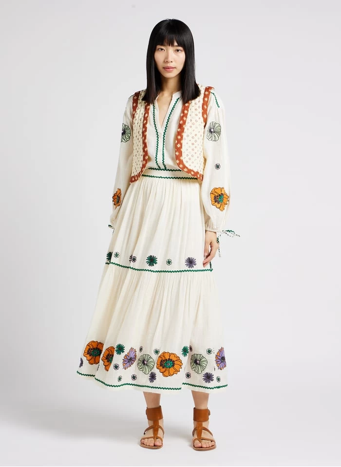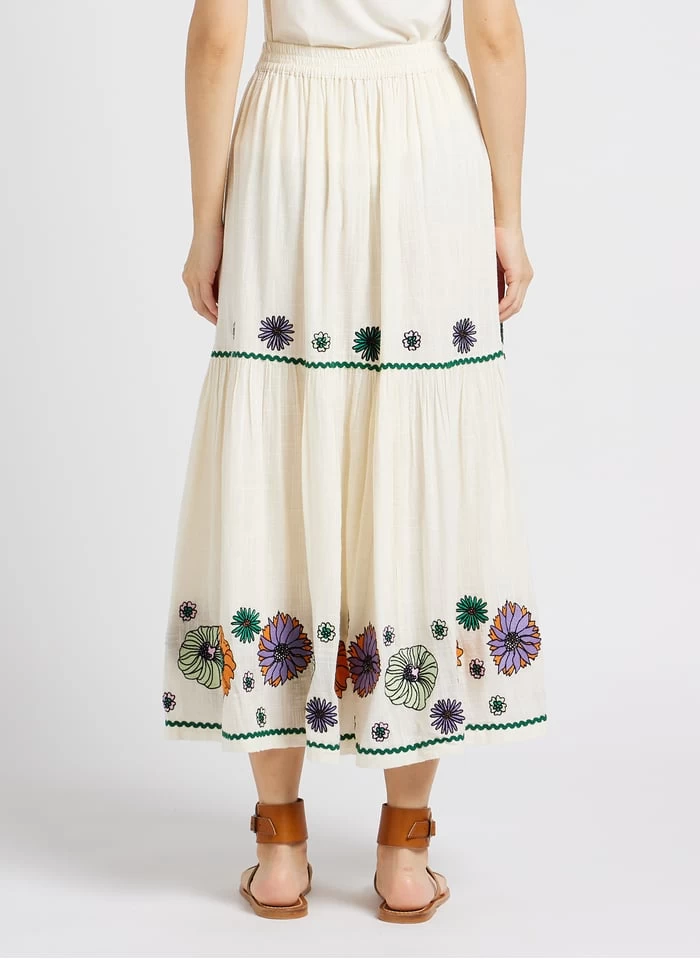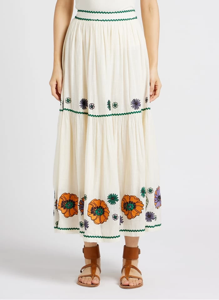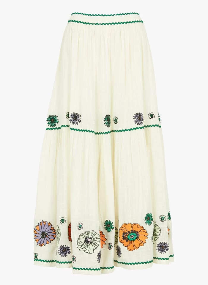 Halflange, gerende rok met borduursel katoenblend by Stella Forest voor Dames.