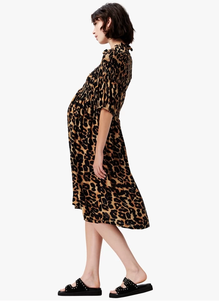 Halflange, nauwsluitende jurk met opstaande kraag en luipaardprint by Supermom voor Dames.