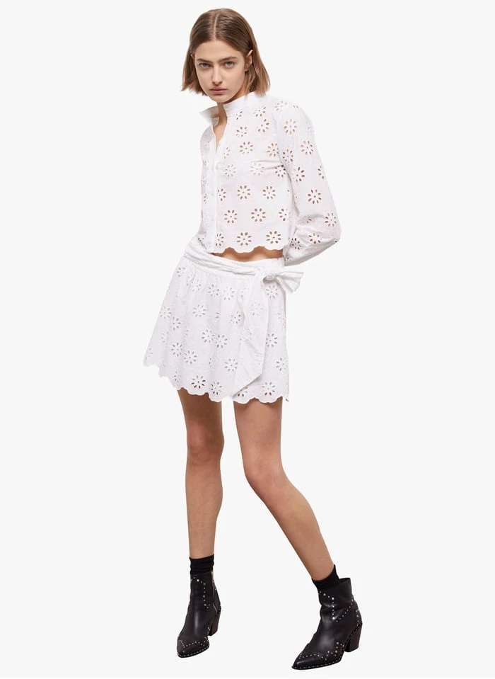 Korte, katoenen rok met Engels kant by The Kooples voor Dames.