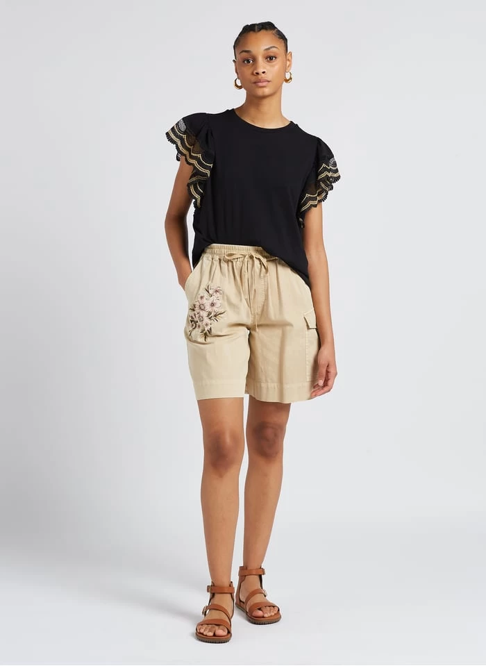 Short van katoenmix met hoge taille en borduurwerk by Twinset voor Dames.